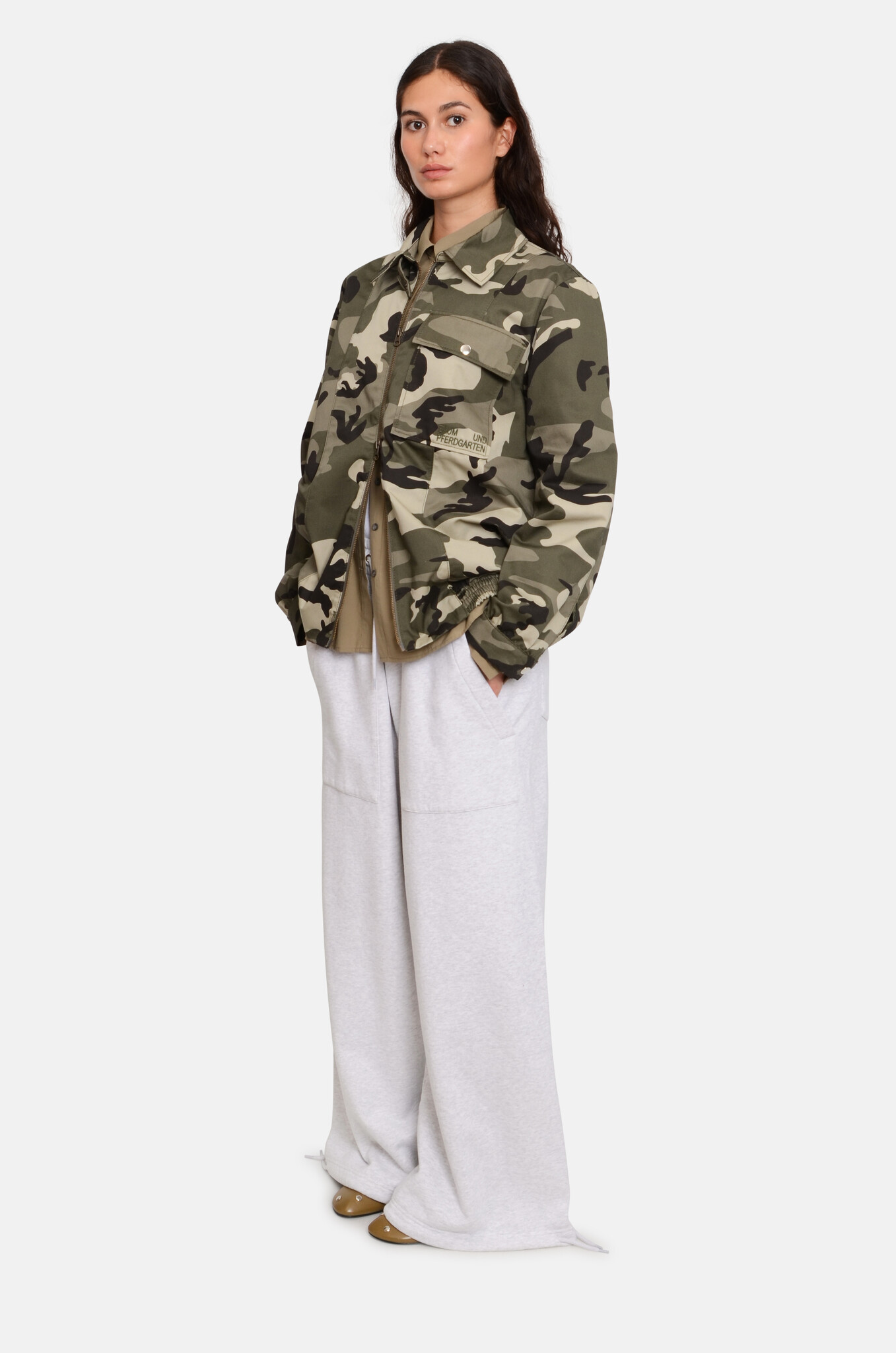 A modern take on the iconic barn jacket, now in a bold camo print. Made of a soft cotton fabric, it has a patch pocket at the chest with logo, a zipper closure and an elasticated hemline.
