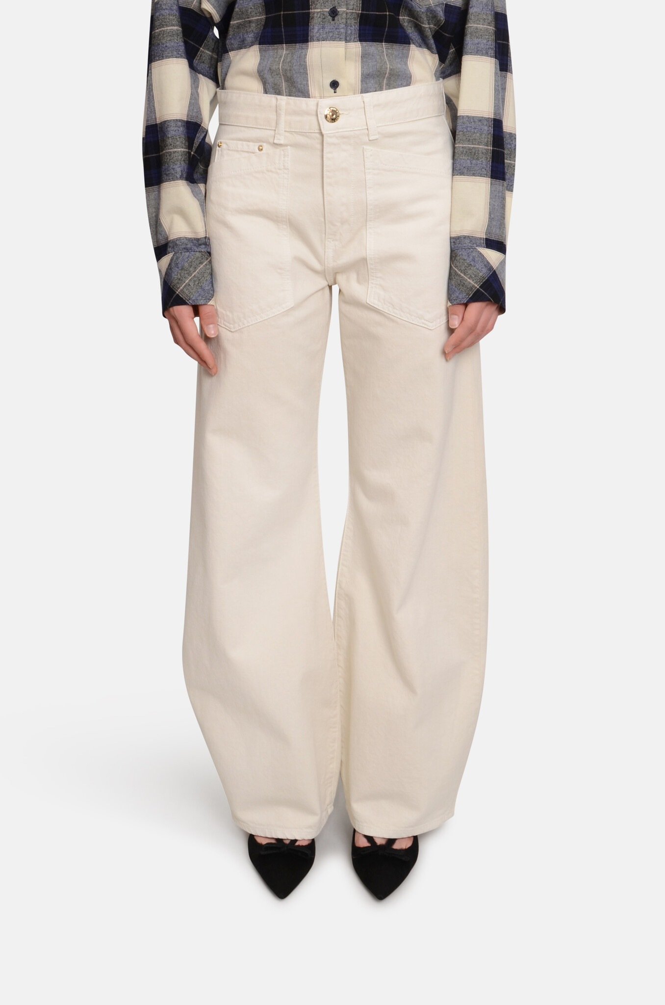 Mid-waist, slouchy jeans with a curved leg. Made in Spain.