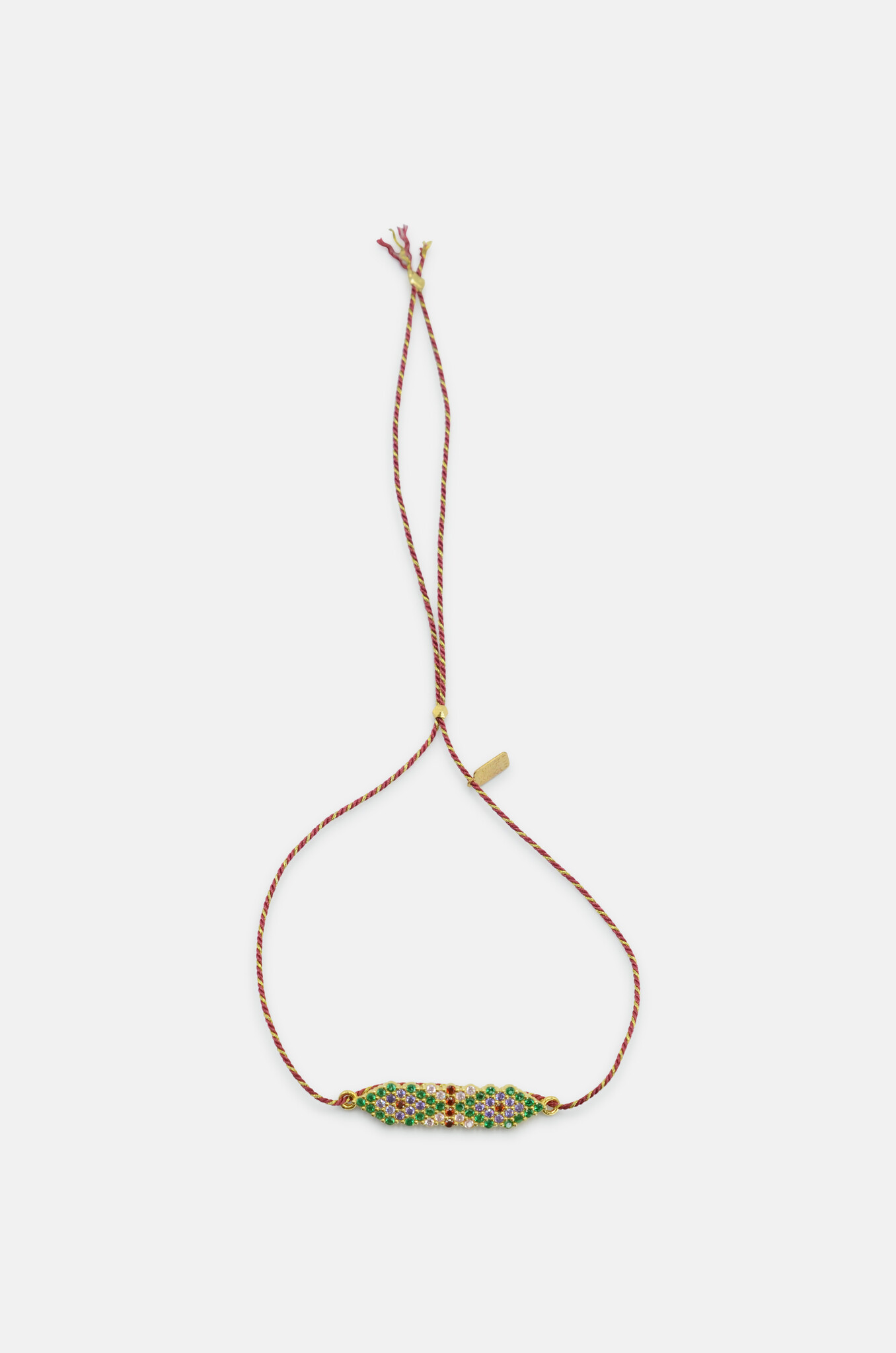 Argyle-shaped, multi-coloured Swarovski bead friendship braceletin goldplated-silver. Made in France.