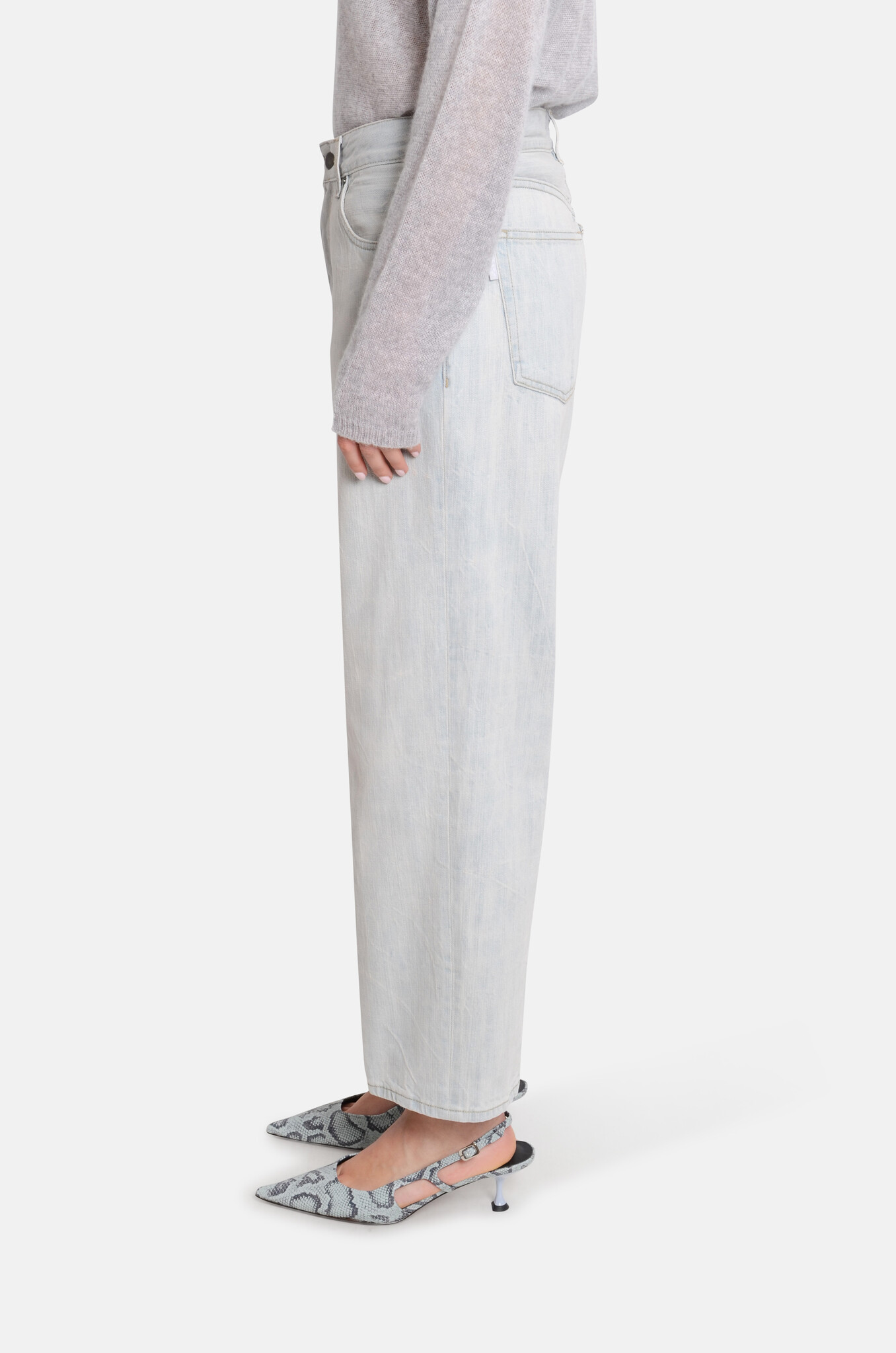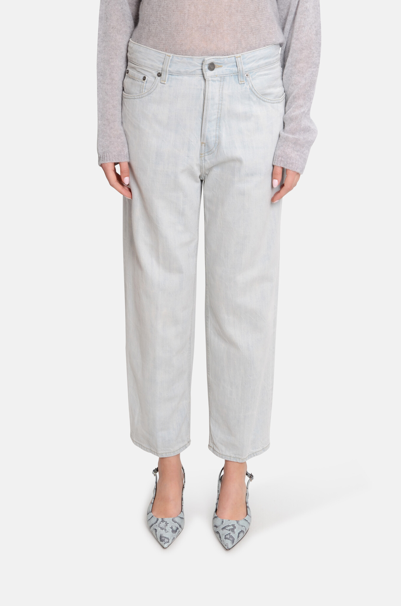 Boyfriend-style, cropped denim with a straight leg and a mid-to-low waist. Made in Italy.