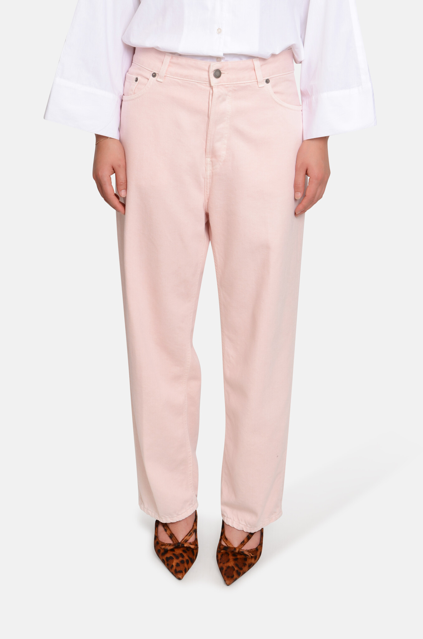 Relaxed boyfriend jeans, slightly cropped. Haikure's popular cut this time in a soft pink denim. Made in Italy.