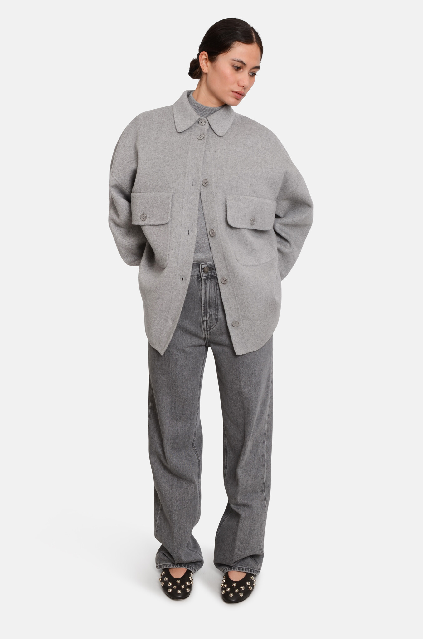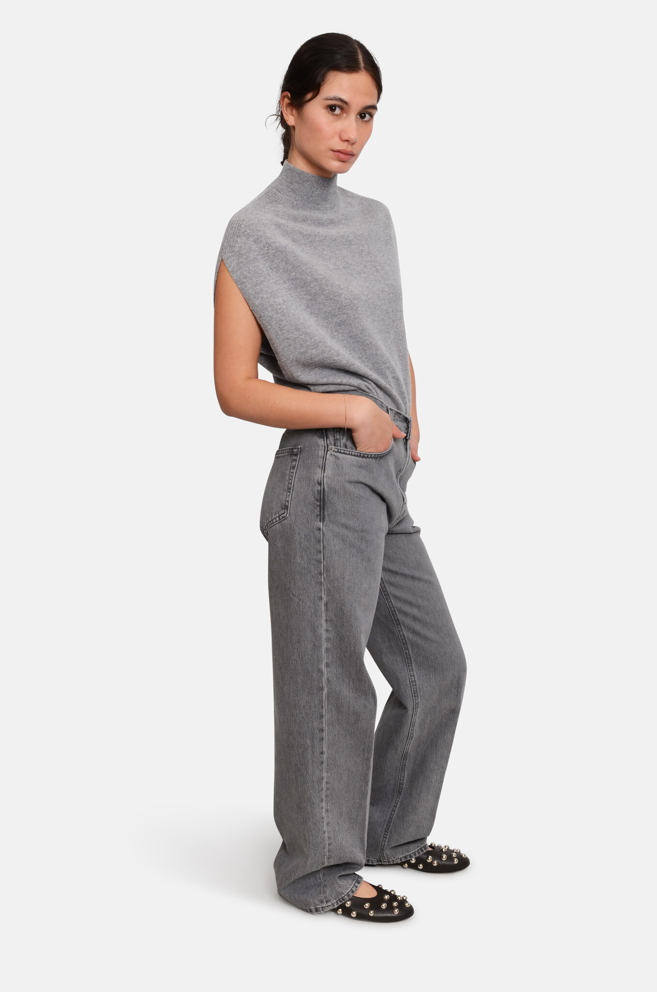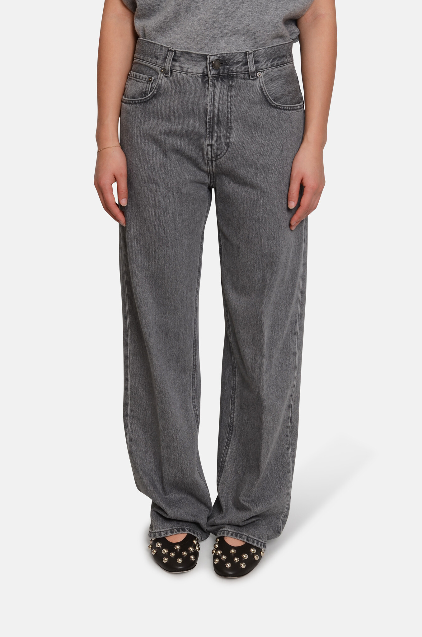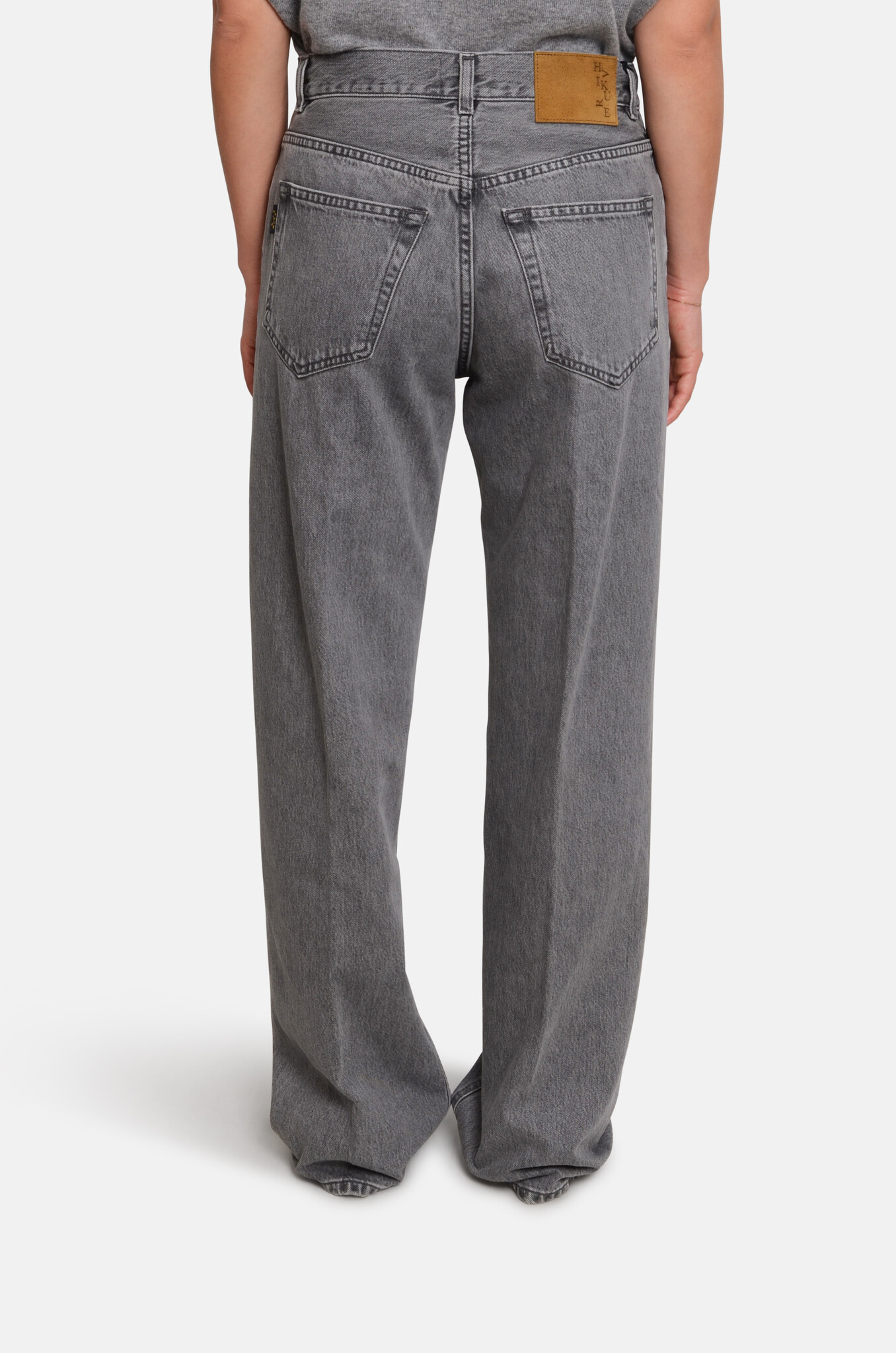 Grey washed denim with a somewhat slouchy fit and a straight leg. Made in Italy.