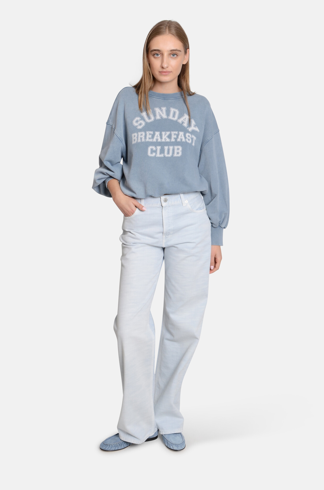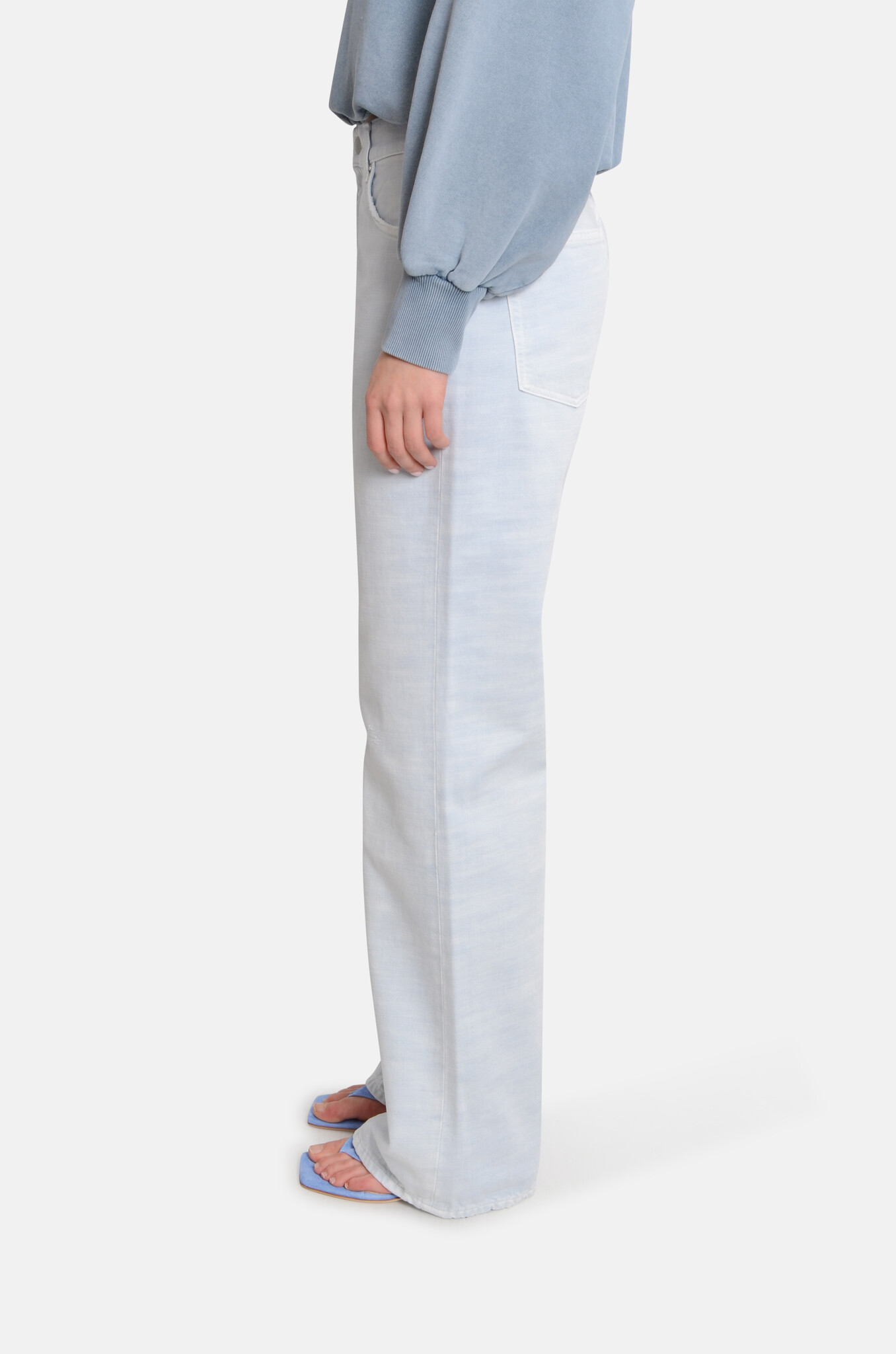 Mid-to-high waist denim with a straight, long leg. The bull fabric is subtlely distressed for a worn-in vibe. Made in Italy.
