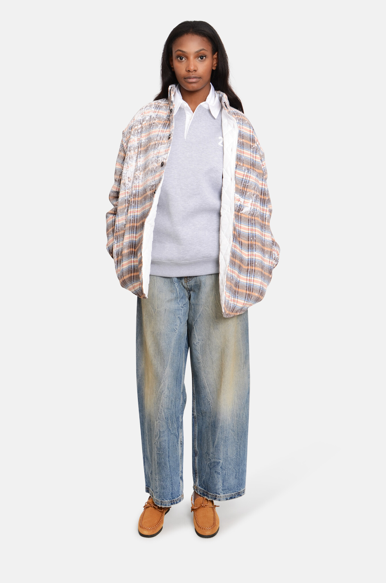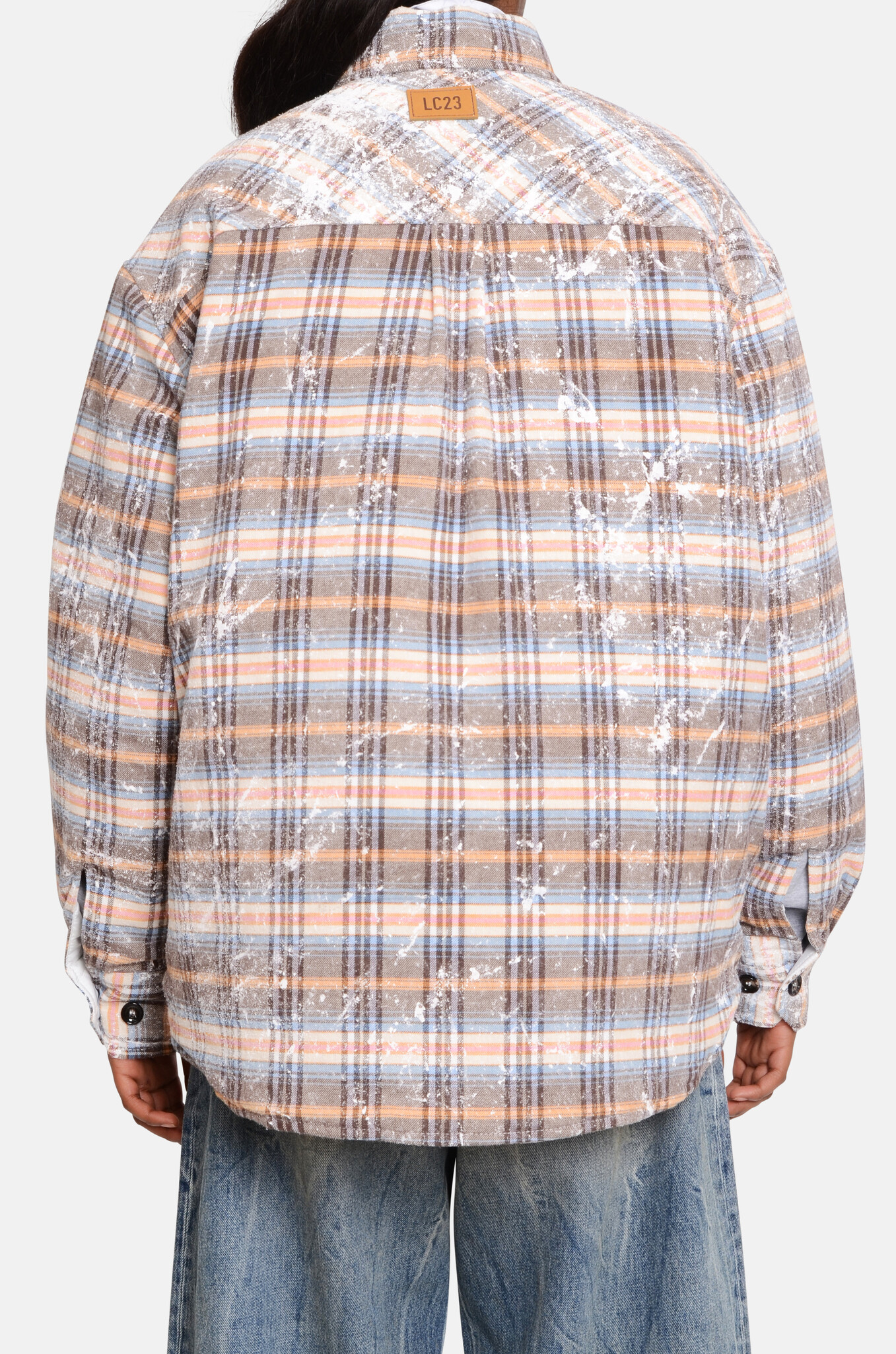 A soft, padded overshirt in a plaid fabric that has a 'worn' effect because of the paint splashes and the distressed details. Relaxed, unisex fit. Made in Italy.