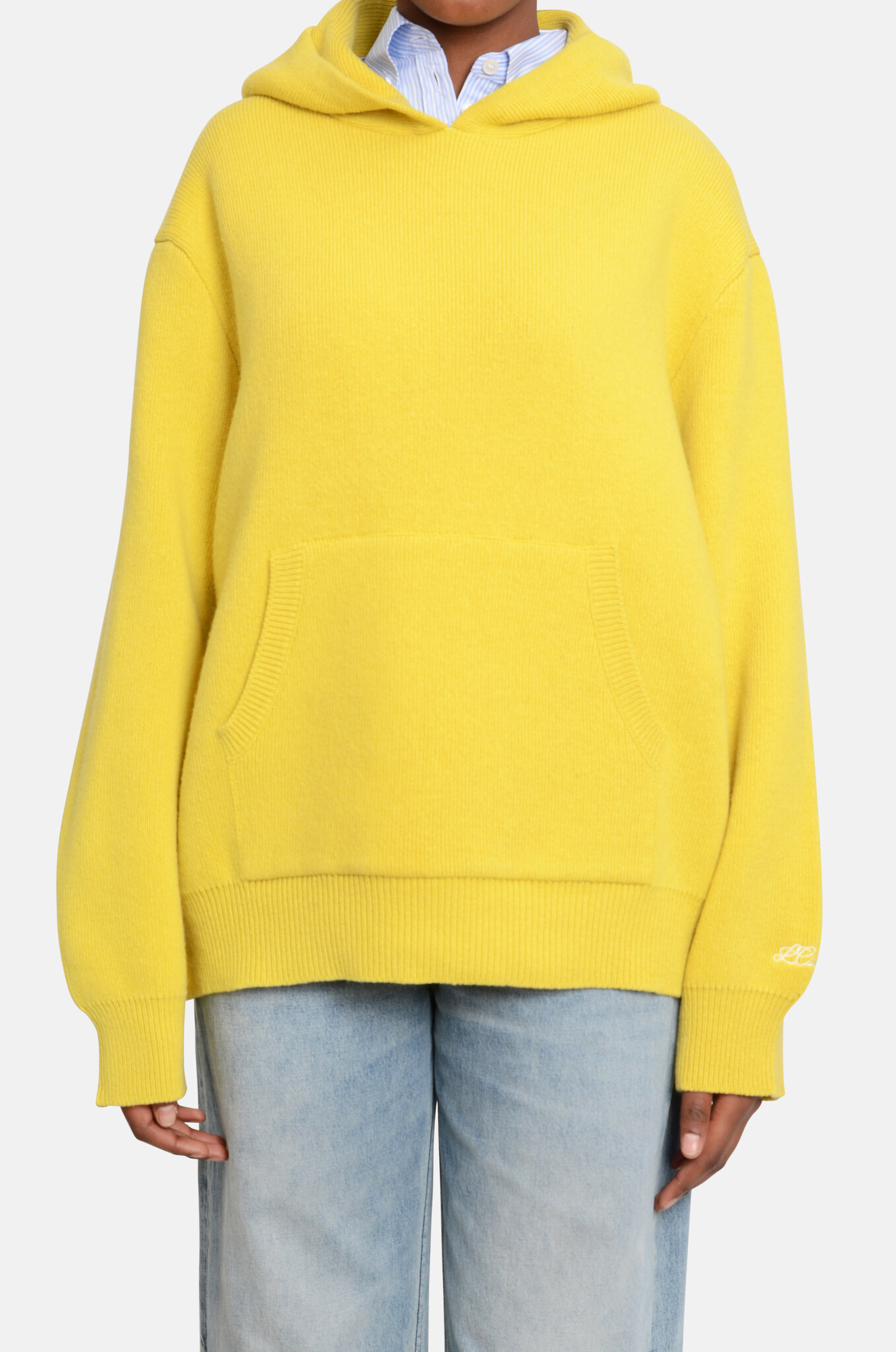 A wool-blend hoodie in a fine rib pattern. It has an oversized fit. Made in Italy.