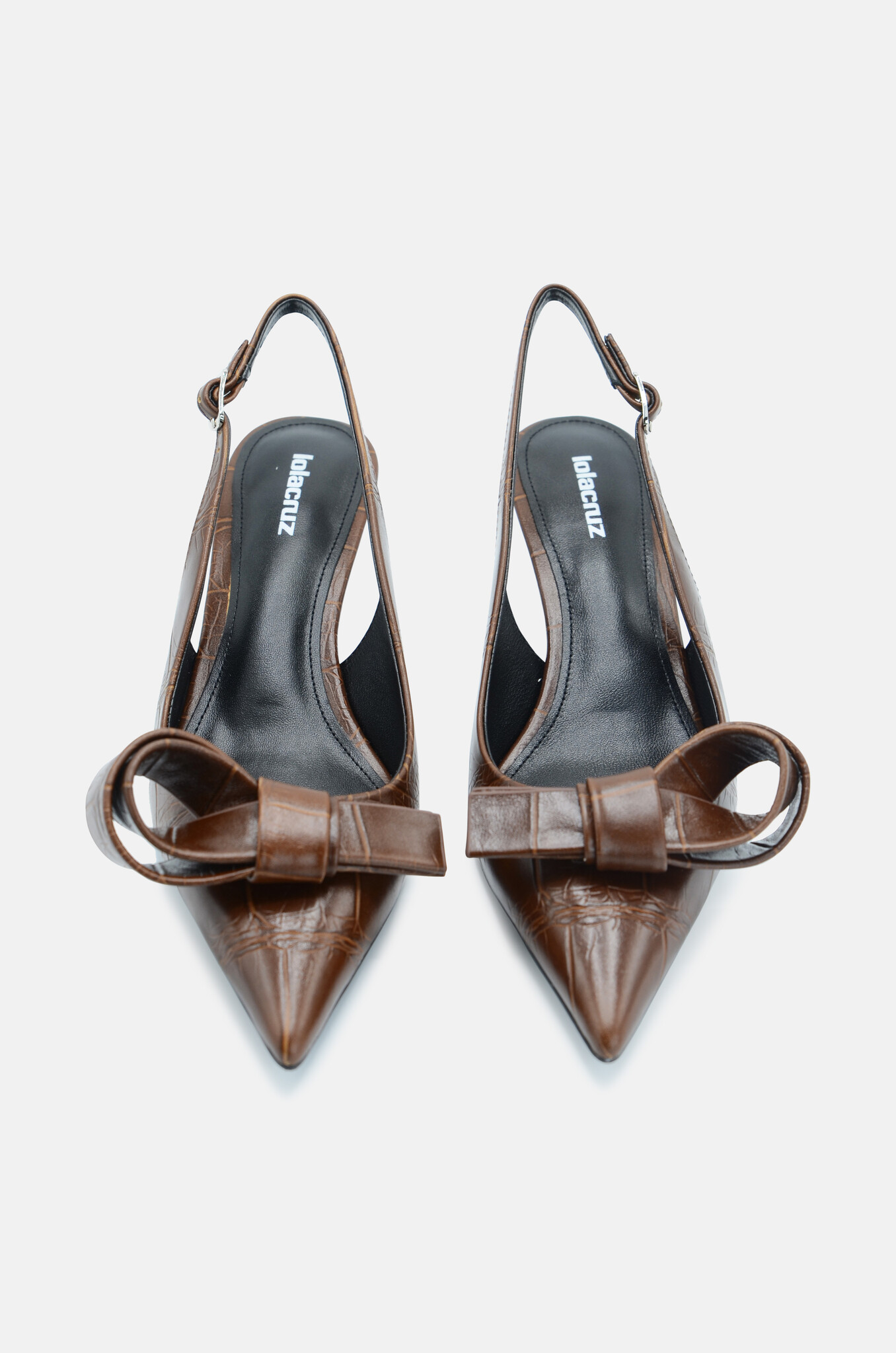 Slingbacks in croc-printed leather with a bow adornment.
