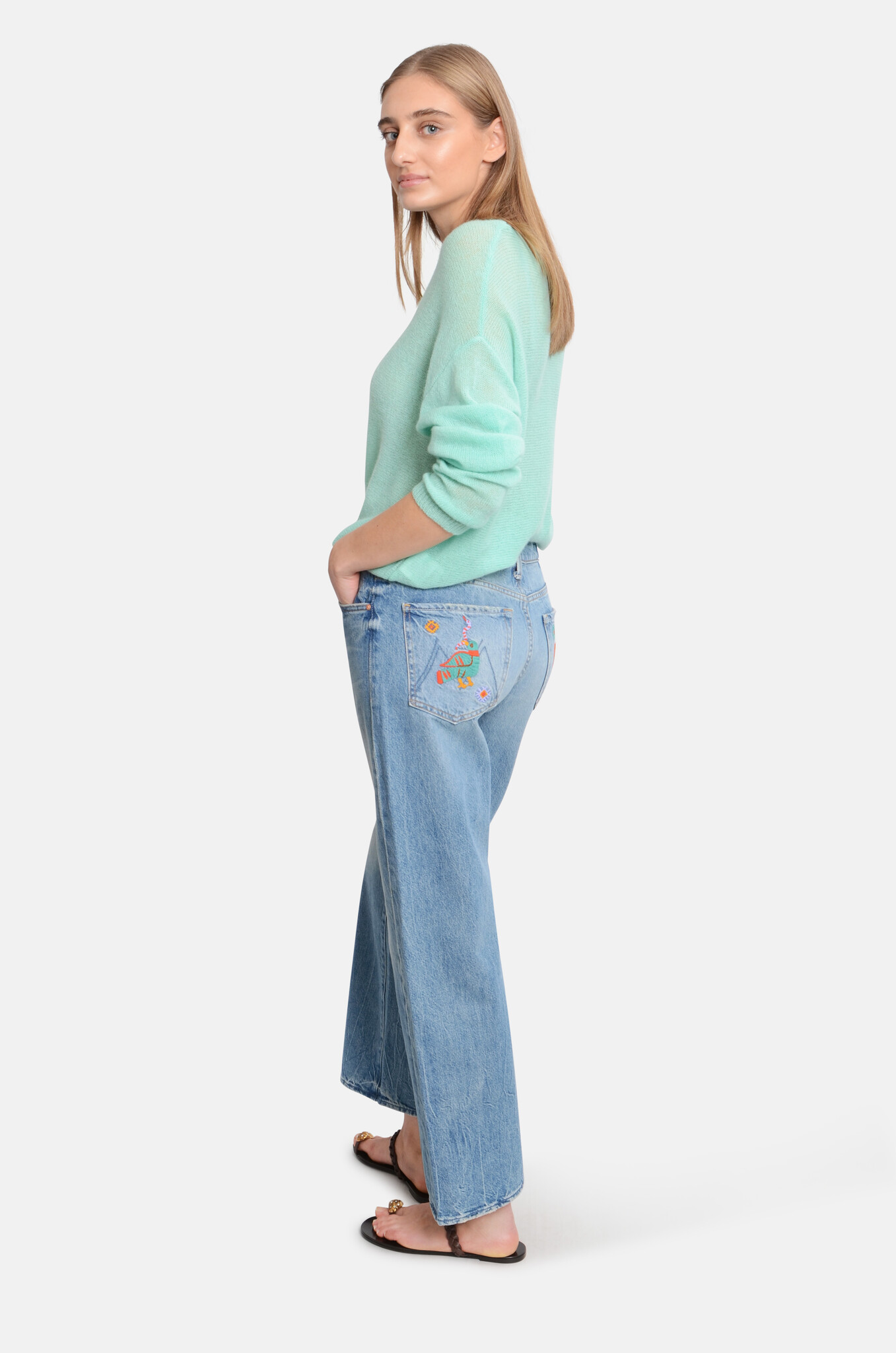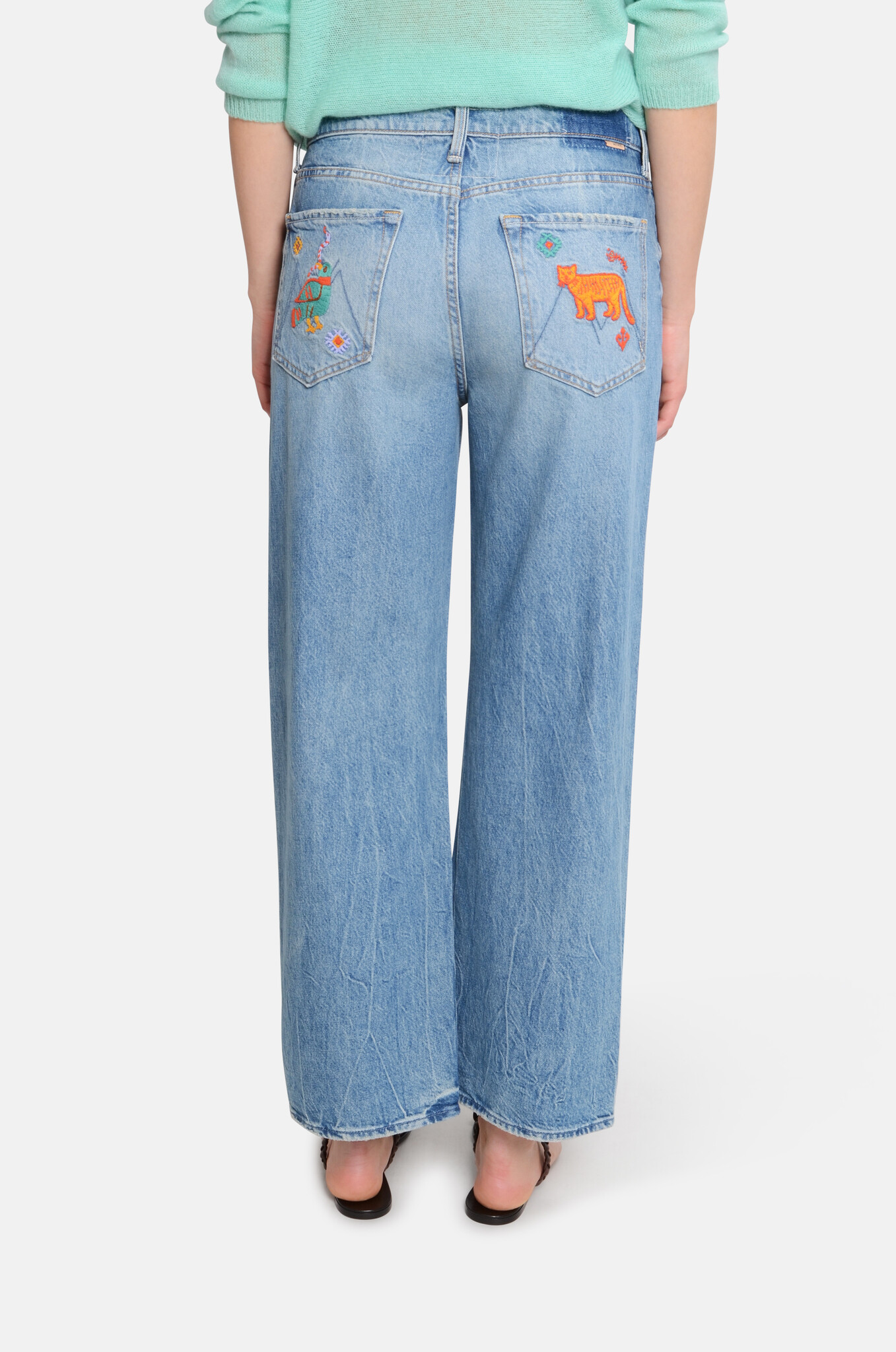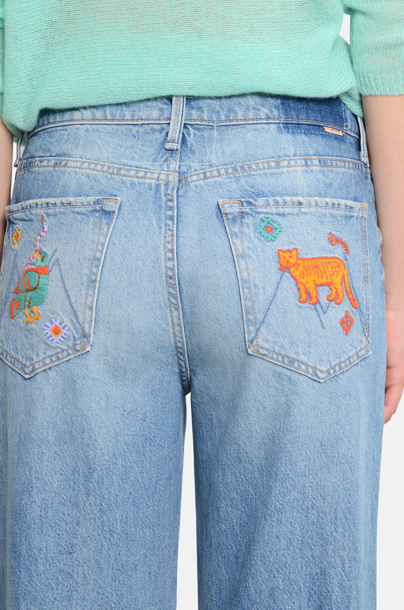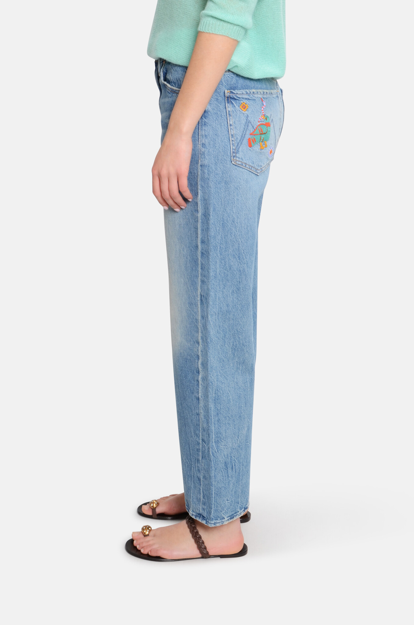 Jeans that sit on the hips with a slightly, slouchy fit, a straight leg, a zip fly and a 28.25-inch inseam with a clean hem. Cute embroidery on the back pockets. Cut from rigid SUPERIOR denim in Los Angeles utilizing fine imported materials.