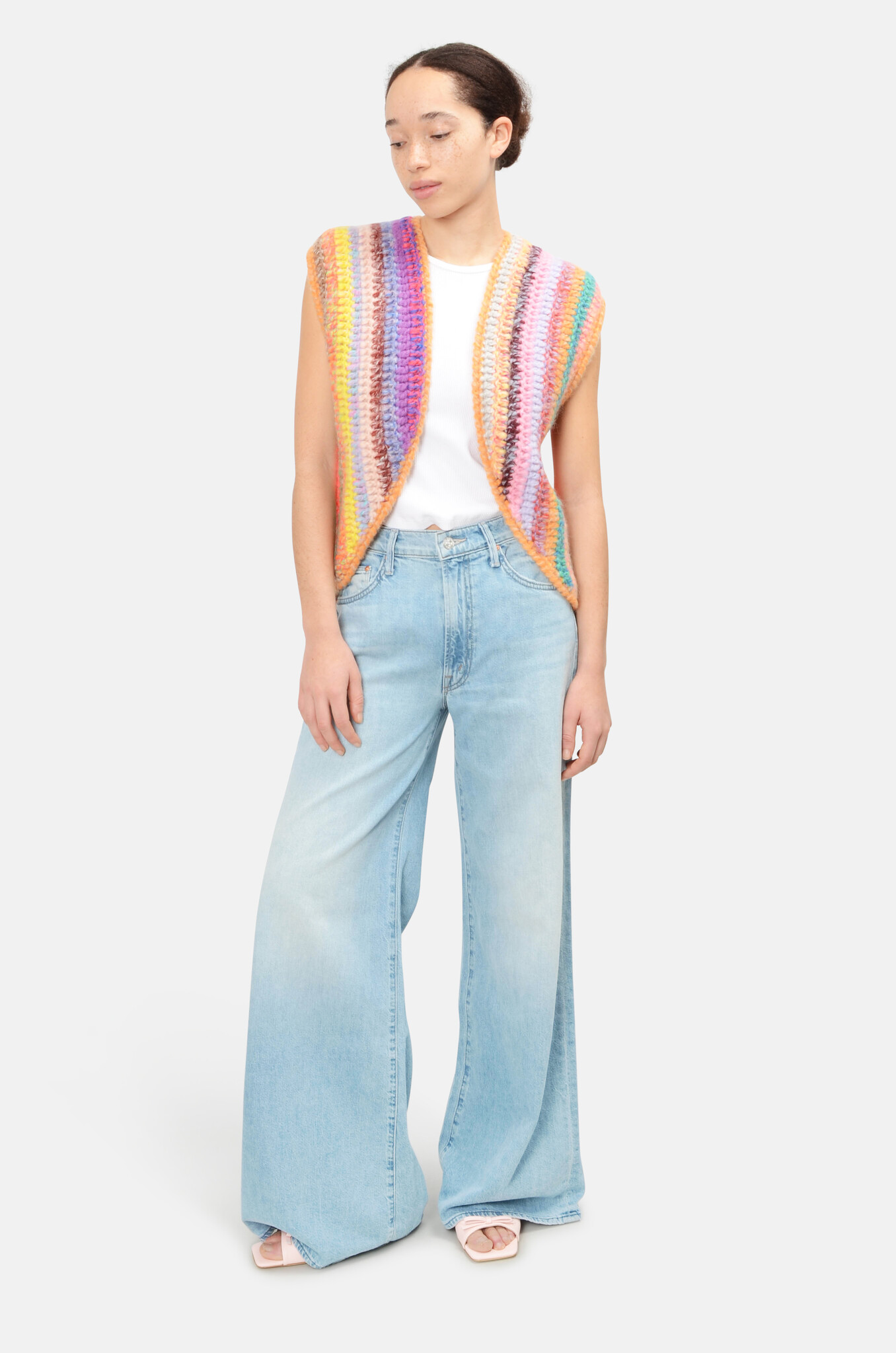 Mid-to-high wide leg pants in a lightweight, very soft denim fabric. Made in Los Angeles.
