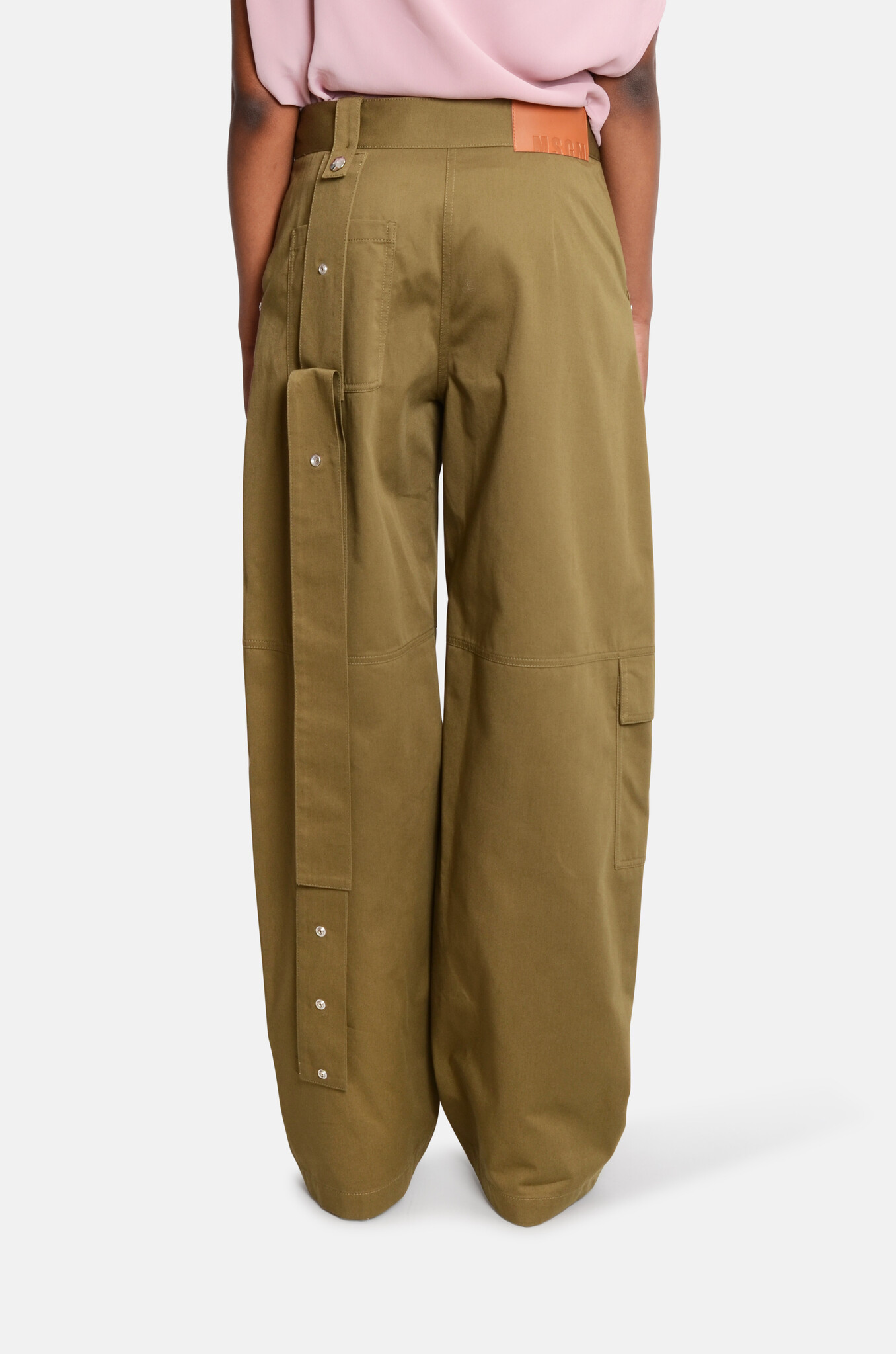 Straight-leg, wide trousers with a relaxed fit. With a snap button, silvertone hardware details and workwear-style pockets. Finished with a detachable strap for a playful, cool accent.