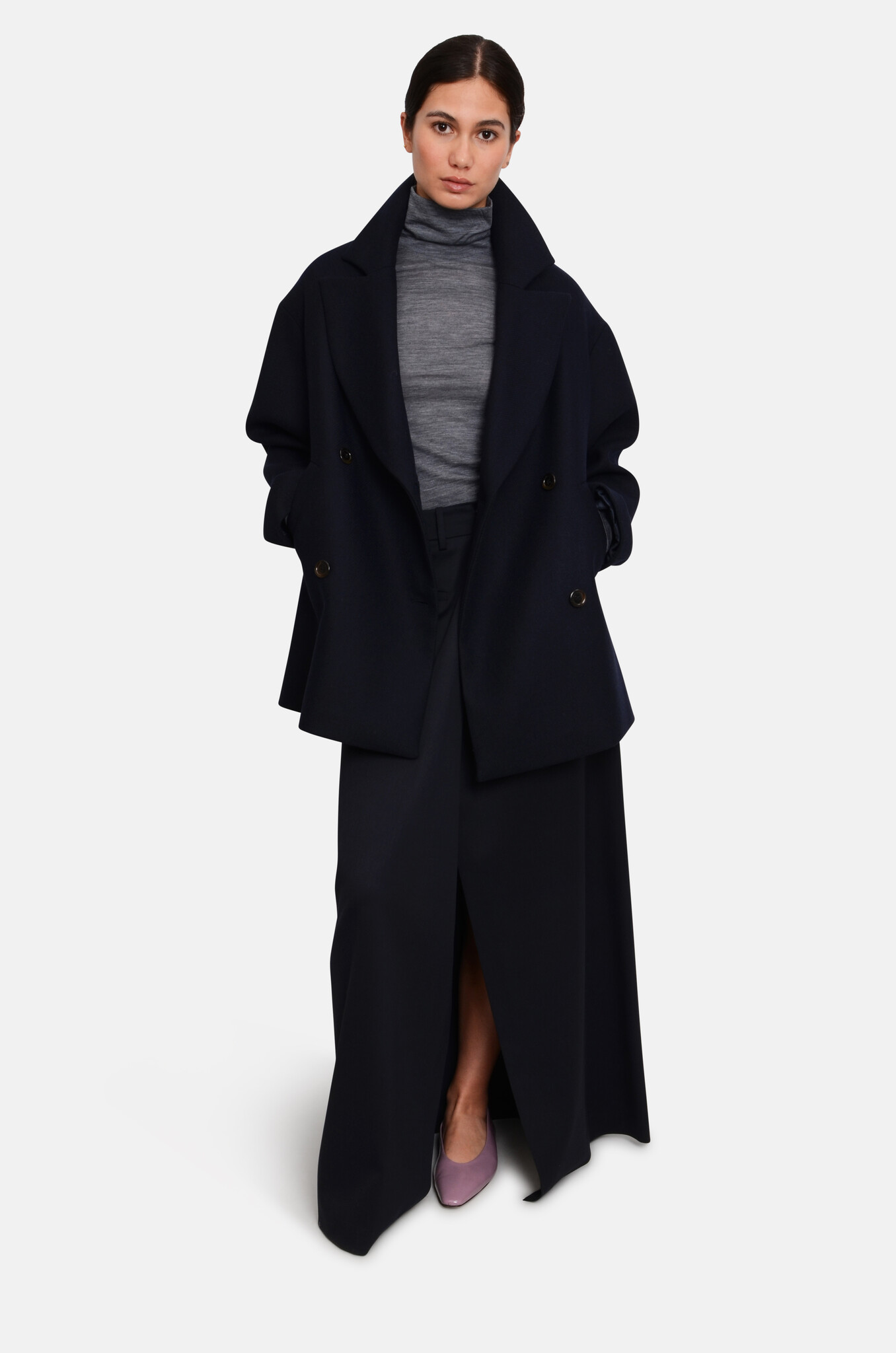 Short double-breasted pea coat in a wool blend Manteco fabric. Made in Italy.