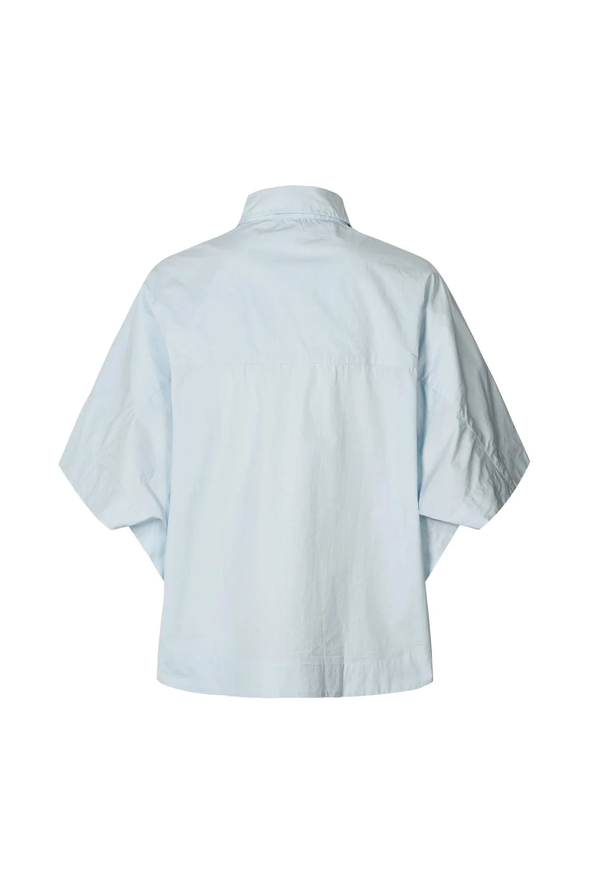 RABENS SALONER Berte Curved Hem Shirt Light Blue