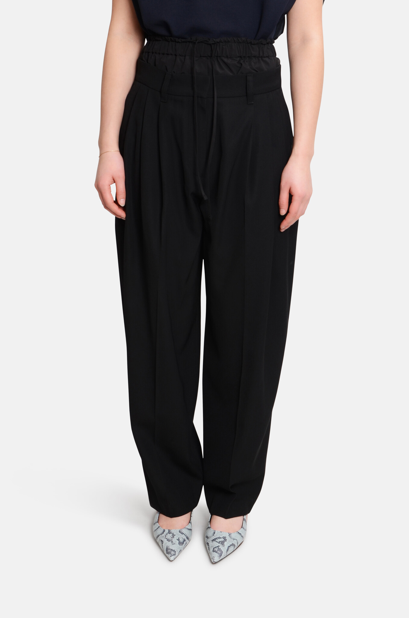 Wool-blend, double-layered trousers made of a soft-touch fabric. Elasticated waistband with drawstring for a secure, comfortable fit. Made in South Korea.